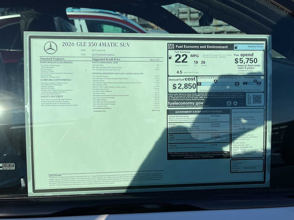 AMG® LINE INTERIOR AMG® Line Floor Mats, Sport Steering Wheel, 3-twin-spoke steering wheel w/flattened bottom, finished in Nappa leather, heavily embossed in the grip area, horizontal twin spokes in high-gloss black, vertical twin spokes in silver chrome, shift paddles in silver chrome and control via touch control panels, AMG® LINE EXTERIOR: AMG® Line Body Styling, Perforated Brake Discs, DRIVER ASSISTANCE PACKAGE Active Lane Keeping Assist, Active Distance Assist DISTRONIC®, Active Steering Assist, Active Speed Limit Assist, Extended Restart in Stop & Go Traffic, Active Lane Change Assist, Route-Based Speed Adaptation, Driver Assistance Package Plus, EXCLUSIVE TRIM Augmented Video for Navigation, Ventilated Front Seats, Burmester® Surround Sound System w/Dolby Atmos, 13 high-performance speakers, 9-channel DSP amplifier w/590-watts output and Frontbass, Music Streaming, Sound Personalization, WHEELS: 21 AMG® TWIN 5-SPOKE W/BLACK ACCENTS Tires: 275/45R21 Fr & 315/40R21 Rr, PANORAMA POWER TILT/SLIDING SUNROOF, ILLUMINATED RUNNING BOARDS, TRAILER HITCH Increased Towing Capacity, WINTER PACKAGE Heated Washer System, Heated Steering Wheel, NIGHT PACKAGE: High-Gloss Black Elements, front wing, grille lamellas, rear diffuser insert, exterior mirrors, beltline and window trim, Black Roof Rails, LOAD SILL PROTECTION.