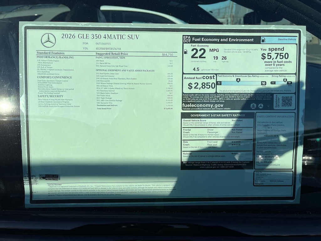 EXCELLENT SAFETY FOR YOUR FAMILY Electronic Stability Control, Brake Assist, 4-Wheel ABS, Tire Pressure Monitoring System, 4-Wheel Disc Brakes Mercedes-Benz GLE 350 with Black exterior and Black interior features a 4 Cylinder Engine with 255 HP at 5800 RPM*.