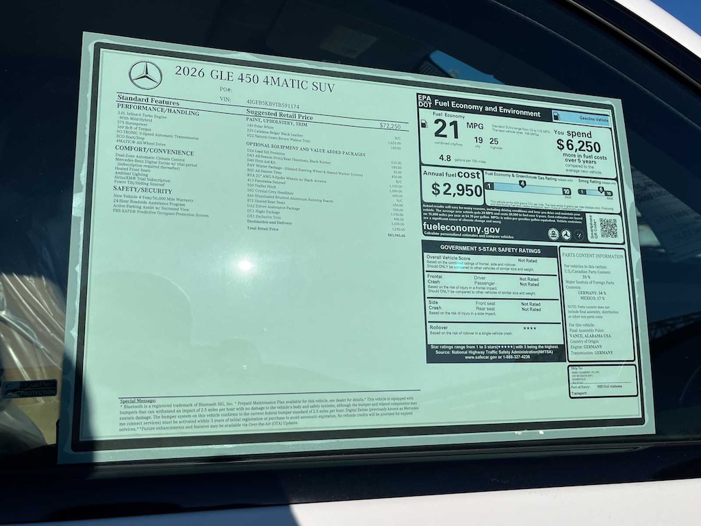 Cross-Traffic Alert, Lane Keeping Assist, Child Safety Locks, Electronic Stability Control, Brake Assist, 4-Wheel ABS, Tire Pressure Monitoring System, 4-Wheel Disc Brakes Mercedes-Benz GLE 450 with Polar White exterior and Catalana Beige/Black interior features a Straight 6 Cylinder Engine with 375 HP at 5500 RPM*.