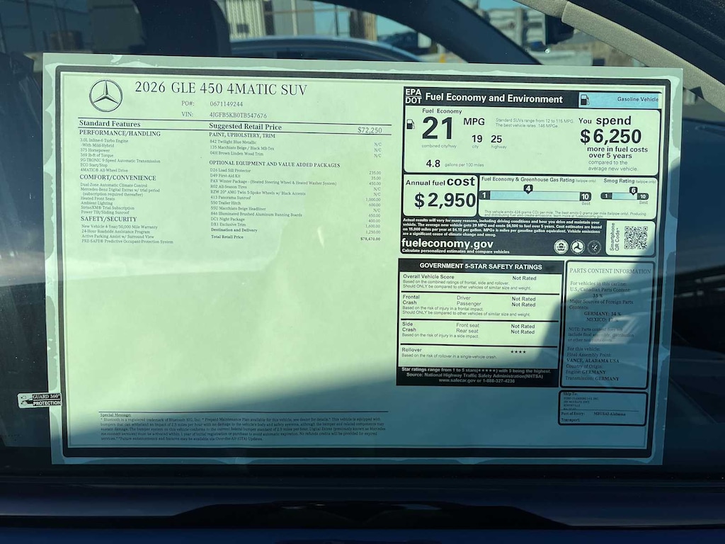 EXCELLENT SAFETY FOR YOUR FAMILY Child Safety Locks, Electronic Stability Control, Brake Assist, 4-Wheel ABS, 4-Wheel Disc Brakes, Tire Pressure Monitoring System Mercedes-Benz GLE 450 with Twilight Blue Metallic exterior and Macchiato/Black interior features a Straight 6 Cylinder Engine with 375 HP at 5500 RPM*.
