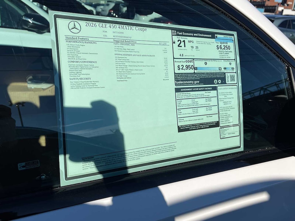 EXCELLENT SAFETY FOR YOUR FAMILY Child Safety Locks, Electronic Stability Control, Brake Assist, 4-Wheel ABS, 4-Wheel Disc Brakes, Tire Pressure Monitoring System Mercedes-Benz GLE 450 with Polar White exterior and Macchiato/Black interior features a Straight 6 Cylinder Engine with 375 HP at 5500 RPM*.