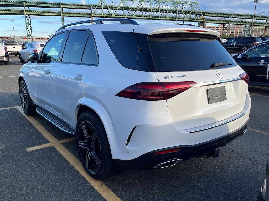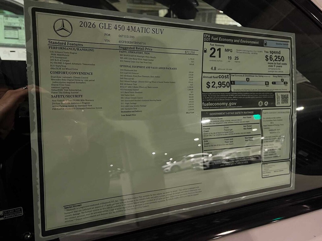 Child Safety Locks, Electronic Stability Control, Brake Assist, 4-Wheel ABS, Tire Pressure Monitoring System, 4-Wheel Disc Brakes Mercedes-Benz GLE 450 with MANUFAKTUR Moonlight White Metallic exterior and White/Black interior features a Straight 6 Cylinder Engine with 375 HP at 5500 RPM*.