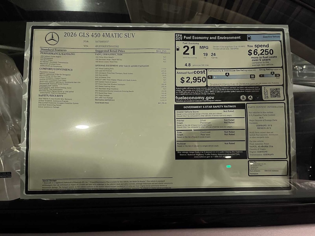 EXCELLENT SAFETY FOR YOUR FAMILY Cross-Traffic Alert, Blind Spot Monitor, Lane Keeping Assist, Child Safety Locks, Electronic Stability Control, Brake Assist, 4-Wheel ABS, 4-Wheel Disc Brakes, Tire Pressure Monitoring System Mercedes-Benz GLS 450 with Cirrus Silver Metallic exterior and Macchiato Beige/Black interior features a Straight 6 Cylinder Engine with 375 HP at 5500 RPM*.