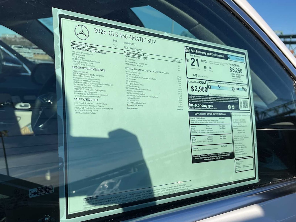 EXCELLENT SAFETY FOR YOUR FAMILY Lane Keeping Assist, Blind Spot Monitor, Cross-Traffic Alert, Child Safety Locks, Electronic Stability Control, Brake Assist, 4-Wheel ABS, 4-Wheel Disc Brakes, Tire Pressure Monitoring System Mercedes-Benz GLS 450 with Polar White exterior and Macchiato Beige/Black interior features a Straight 6 Cylinder Engine with 375 HP at 5500 RPM*.