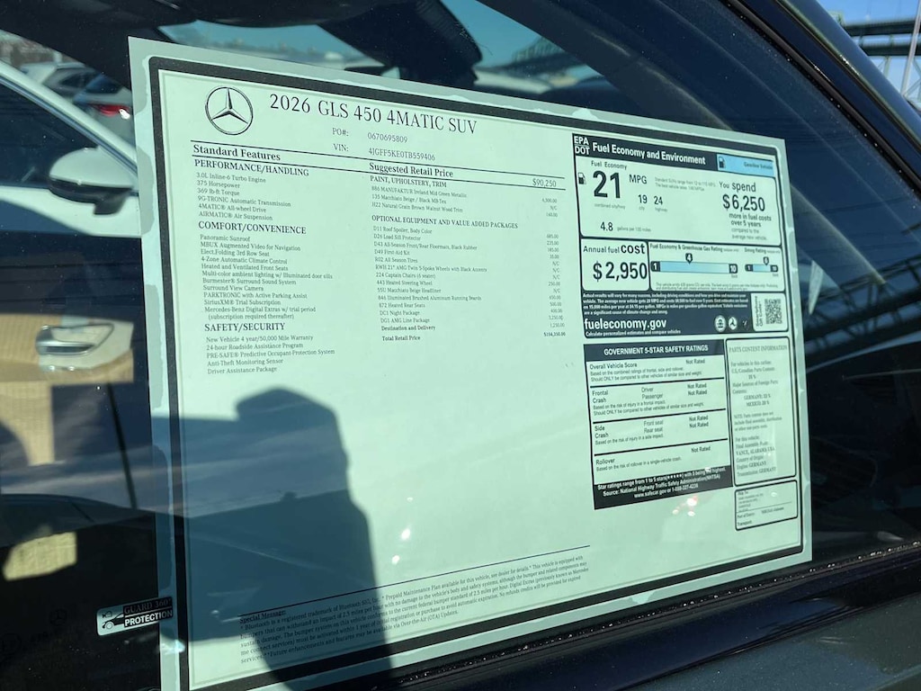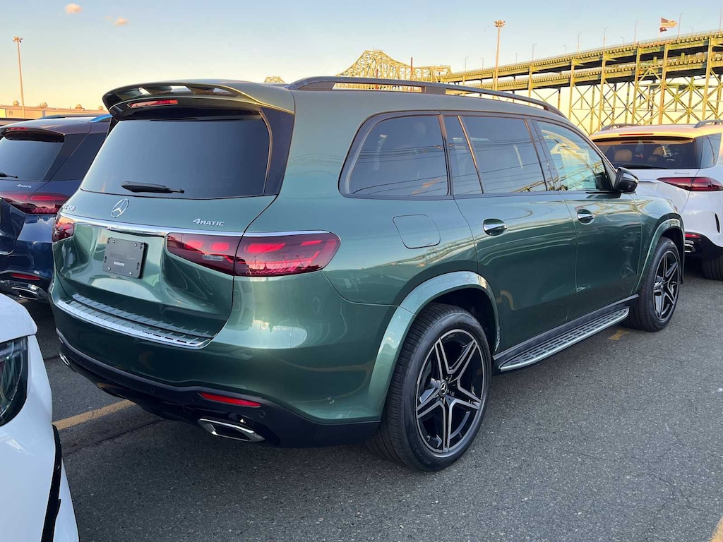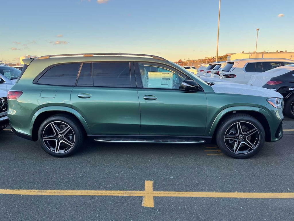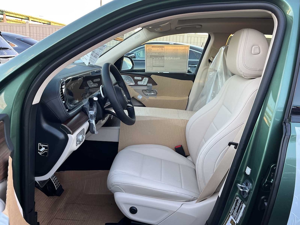 AMG® LINE EXTERIOR AMG® Rear Apron, black diffuser-look insert and chrome trim strip, AMG® Side Skirts in Body Color, Large Front Brake System, larger brake discs at the front axle, AMG® Brushed Stainless Steel Sports Pedals, black rubber studs, AMG® Floor Mats, AMG® Sport 3-Twin-Spoke Steering Wheel, flattened bottom, embossed nappa leather, silver chrome shift paddles, gloss black and silver spokes and touch control panels, Front and Rear Flared Wheel Arches in Body Color, AMG® Bodystyling, AMG® front apron w/air outlets in the wheel arch linings, ROOF SPOILER, ILLUMINATED RUNNING BOARDS, NIGHT PACKAGE: High-Gloss Black Elements, high-gloss black front apron trim strip, high-gloss black simulated underguard, high-gloss black rear apron trim strip, high-gloss black side mirrors and high-gloss black window line and beltline trim strips, Matte Black Roof Rails, Dark Chrome Grille w/4 Slats, HEATED STEERING WHEEL, LOAD SILL GUARD. Safety equipment includes Lane Keeping Assist, Blind Spot Monitor, Cross-Traffic Alert, Child Safety Locks, Electronic Stability Control, Brake Assist, 4-Wheel ABS, 4-Wheel Disc Brakes, Tire Pressure Monitoring System. Mercedes-Benz GLS 450 with MANUFAKTUR Ireland Mid Green Metallic exterior and Macchiato Beige/Black interior features a Straight 6 Cylinder Engine with 375 HP at 5500 RPM*.
