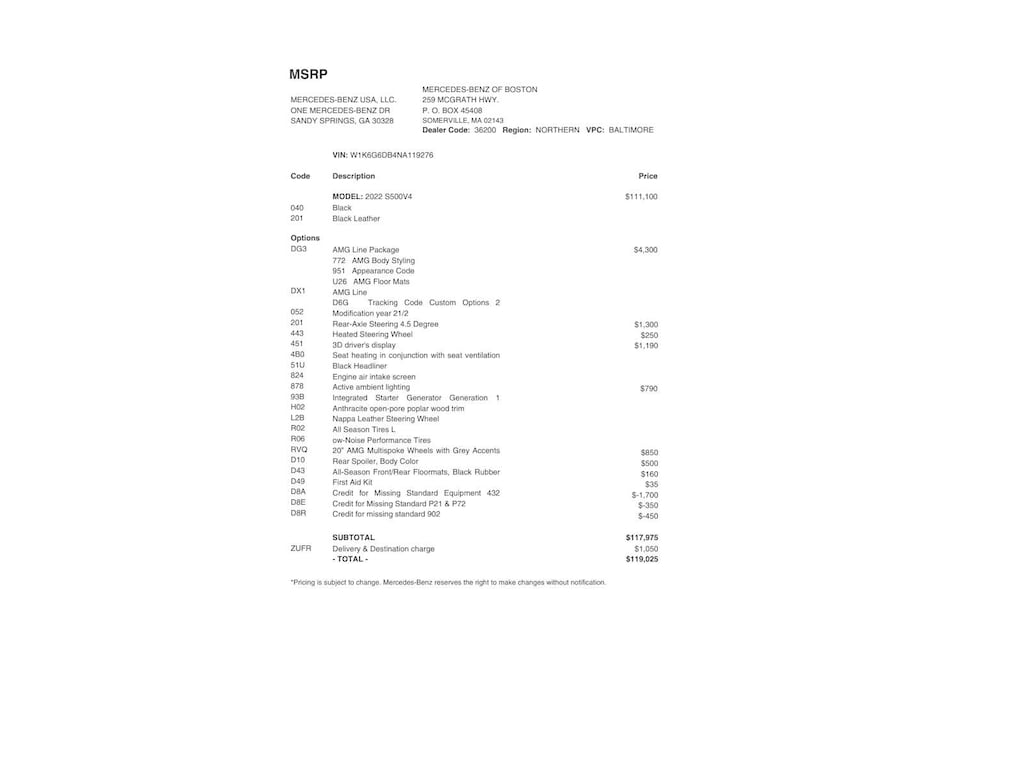 Service Work completed on this Mercedes-Benz S 500 included: Total Value: $3,982.50. Oil & Filter Change Using Original OEM Parts, Battery Voltage Test, Windshield Wiper Blades Replaced, Tires Inspected, 4 Tires Replaced, Brake Inspection, Front Brake Rotors Replaced, Engine Air Filter Replaced, Emissions System Check, Professional Detailed Inside and Out, Function Test all Lights, Cooling System Inspection, Transmission Fluid Inspection, Differential Fluid Inspection, Function Test all Options & Accessories.