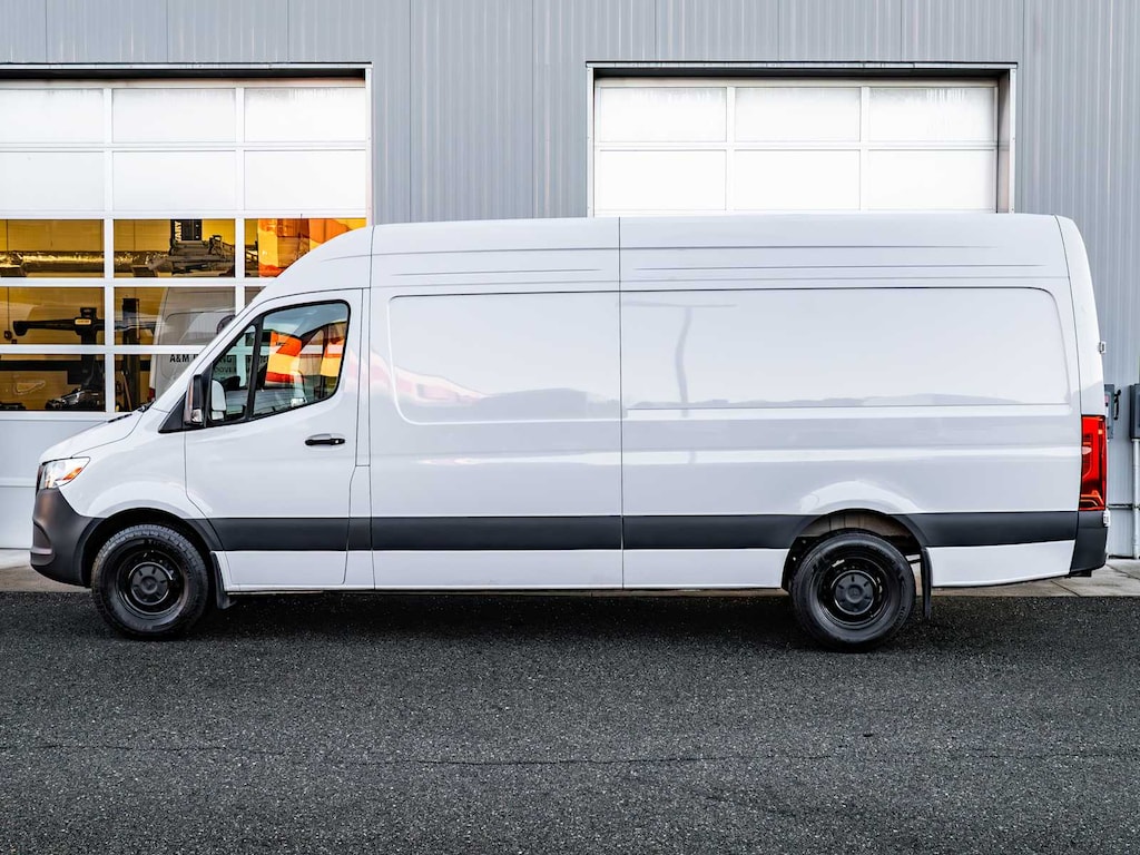 Blind Spot Monitor, Brake Assist, 4-Wheel ABS, Tire Pressure Monitoring System, 4-Wheel Disc Brakes Mercedes-Benz Sprinter Cargo Van with Arctic White exterior and Black interior features a 4 Cylinder Engine with 170 HP at 3800 RPM*.