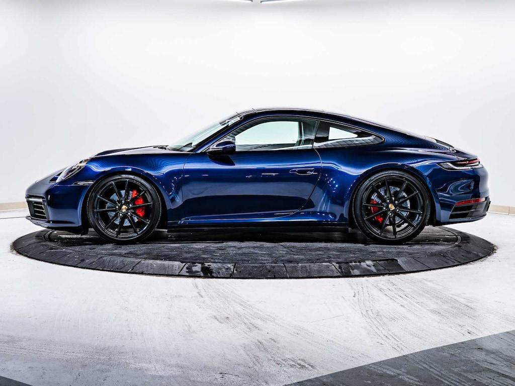 Lane Keeping Assist, Brake Assist, 4-Wheel ABS, 4-Wheel Disc Brakes, Tire Pressure Monitoring System Porsche Carrera with Gentian Blue Metallic exterior and Black interior features a Flat 6 Cylinder Engine with 379 HP at 6500 RPM*. Excellent Condition